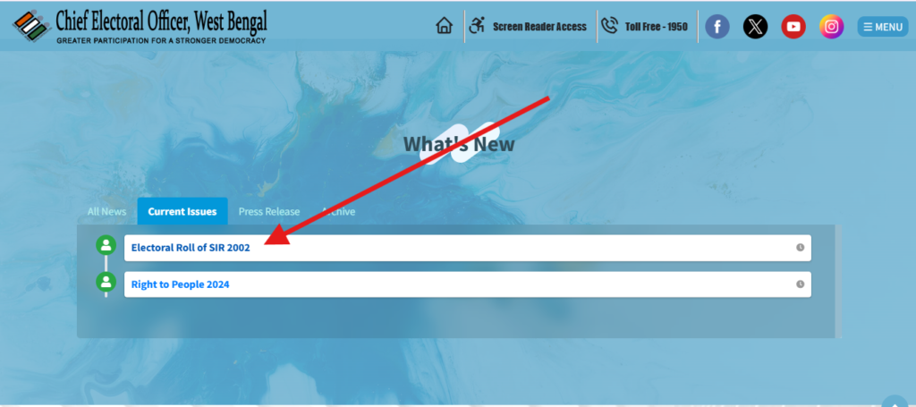 After opening the website, find the Electoral Roll West Bengal section. This section contains the WB voter list download option where you can check the West Bengal voter list old records.