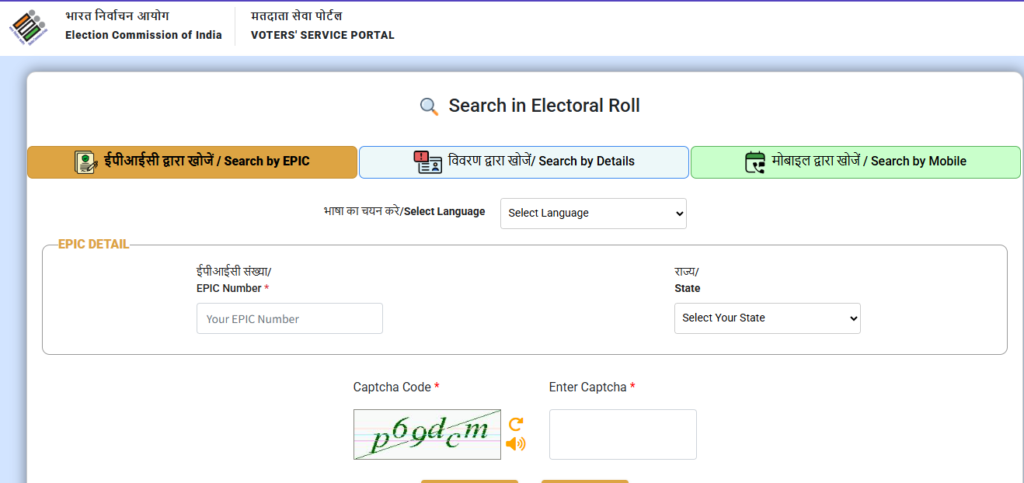 - Search by EPIC Number (Voter ID card number – most accurate)